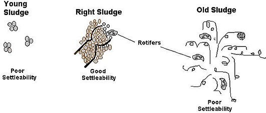 بعكس ما إذا كانت الكائنات الحية باقية لمدة طويلة فى أحواض التهوية وتصبح فى حالة الكهولة فيقل استهلاكها للغذاء وتقل حركتها فلا تقدر على تكوين مجمومات وترسب بسرعة زائدة عن المطلوب.