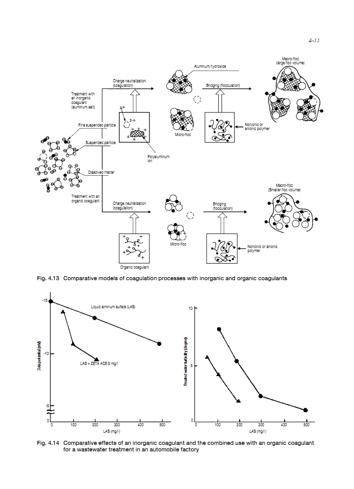 Some organic coagulants not only neutralize the charge of SS but also react with dissolved anionic organic compounds, such as lignin-sulfonate, anionic-surfactant, arginic acid and humic acid, and form the water insoluble salts.