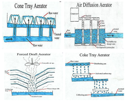 5. Packed column aeration—air flows up, water is sprayed down (these are efficient and the most common type).