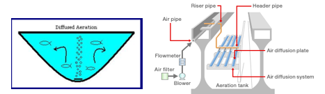 1. Injection of air with blowers by static tube or diffuser (fine bubble and coarse bubble).